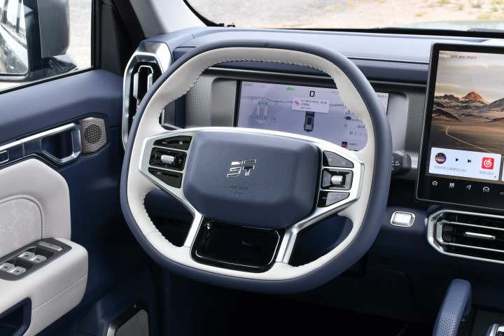 此外,新款捷途山海T2还配备了XWD全自动智能四驱系统,能够根据路况自动分配前后轮的动力,提升车辆的通过性和稳定性。新款捷途山海T2还具备准拖挂车总质量可达1600kg的拖挂资质,这意味着车主可以轻松拖挂房车或小型挂车,开启更多元化的户外生活。让小白司机开心的是 “7+X 智能越野模式”。7 种基础模式包括经济、标准、运动、雪地、泥地、沙地、岩石,覆盖了日常通勤和轻度越野的大部分场景。比如冬天雪天开车,切换到雪地模式,系统会调整动力输出和刹车力度,避免车轮打滑;去郊外玩遇到沙地,沙地模式能让动力更平顺,防止陷车。而 X 一键越野模式更是 “懒人福音”,把所有功能集中到一个按键上,启动后你不用纠结该选什么模式,只管踩油门就行,系统会自动根据路况调整参数,哪怕是第一次开越野的小白,也能轻松应对复杂路况,真正实现 “小白变越野老炮”。同时,28°的接近角、30°的离去角以及700mm的涉水深度,这一组数据确保了它能够从容应对大部分非铺装路面、陡坡、坑洼以及雨季涉水路段。底盘采用前麦弗逊式独立悬架以及后多连杆式独立悬架。4.785m的转弯半径,即使是山间小道也能灵活调头。